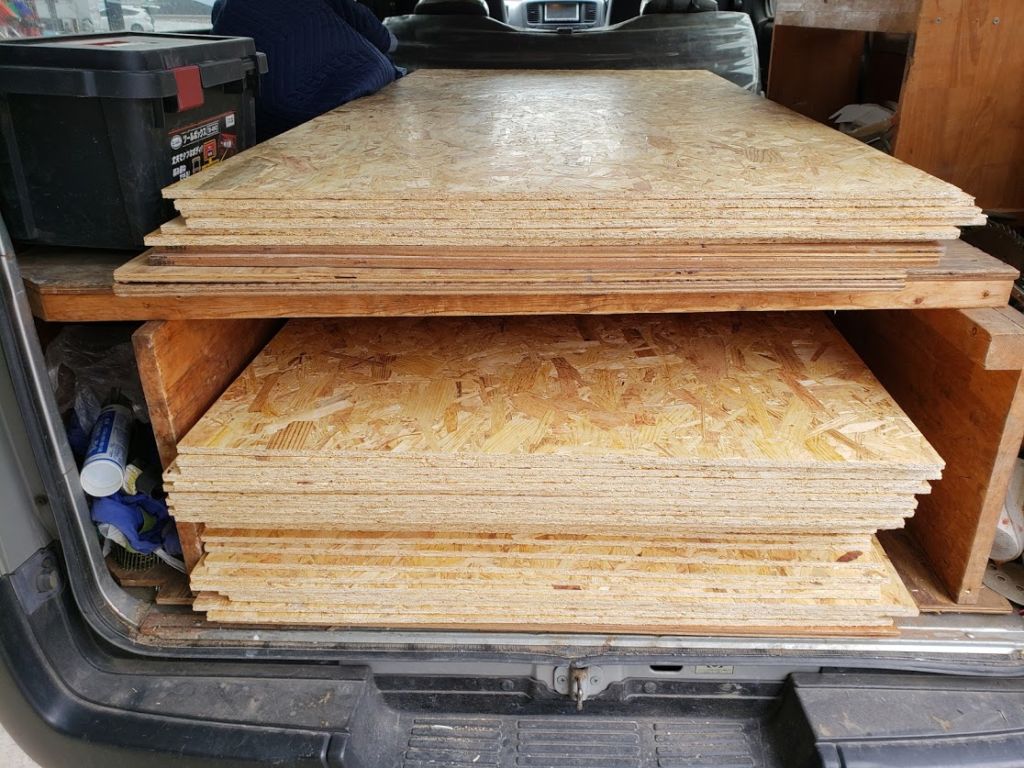 それから東御市のスーパーコメリにてOSB合板30枚購入。 山田様美容室のバックヤードで使用します!!