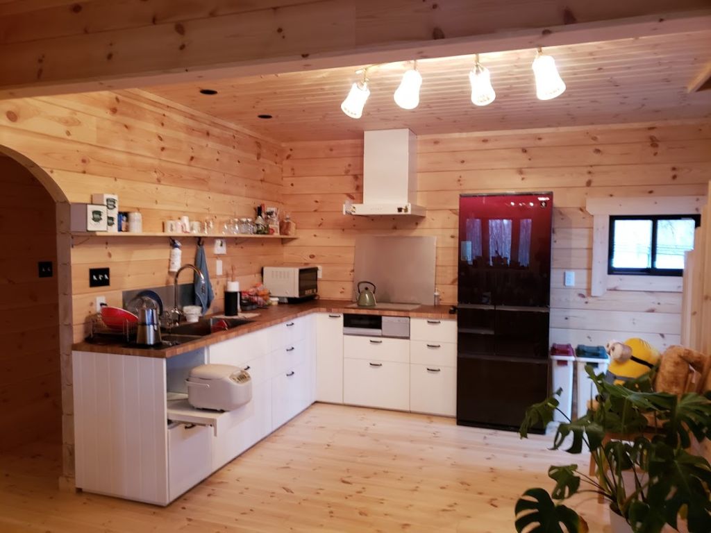 午後からは昨年完成しました松本市K邸様を訪問して近況を聞いてきました。 メンテナンスもありましてM邸様が始まったら行くことをお約束しました。 K様のDIY作品やログハウス内はニャンコが元気よく走り回っていましたよ! おかげで床はひっかき傷で味がでているそうです(笑)