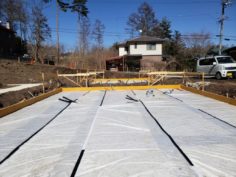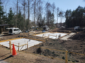 さてお仕事ですが、軽井沢Villaホテルの基礎工事が進んでおります。 管理棟と宿泊棟が3棟ありまして、ただいま管理棟と宿泊棟A棟の2物件を同時進行です。昨日砕石が敷き終わり転圧工事が完了。 防湿フィルムを敷きこんでベース型枠工事までいきました。 明日から竹淵鉄筋さんによる鉄筋工事が始まります。 伐採したてのころから比べるとかなり土地の状況が変わってきました。 段取りよく進めて北欧P&Bキット搬入に備えたいとおもいます。