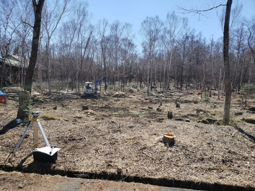 さてお仕事ですが長野県南牧村M邸様ログハウス新築工事現場の伐採工事が完了しました。 それほど太くはなかったですが100本ぐらいは伐採したんじゃないでしょうか!! 弊社の会長をはじめ会長世代の朝雄さんとタケさんが頑張ってくれました。 滝沢さんもユンボ作業で段取りよく切った木を積み上げました。 弊社はあまり外注工事をしないで自社にてなんとか工事をしようと考えています!! その分コストも落とせお客様のご負担にならないよう頑張っておりますよ!! 基礎工事は22日ぐらいから予定します!
