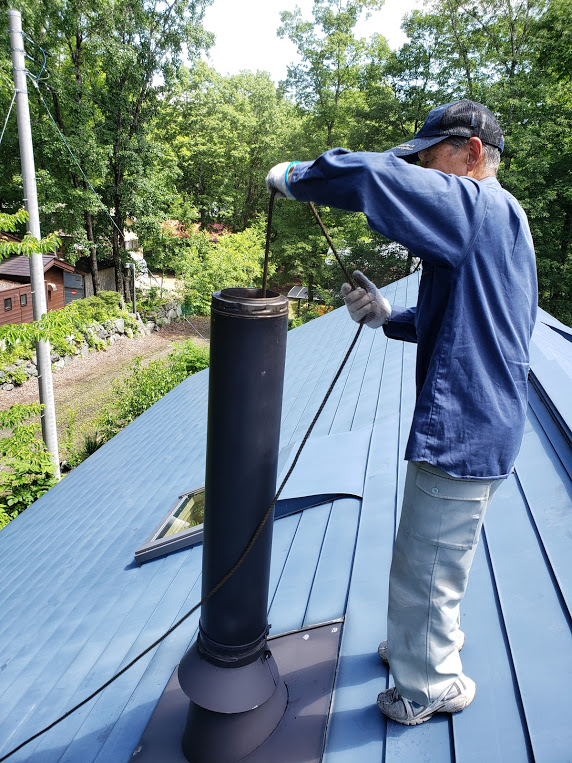 大工工事はマサ君にお願いしまして私はあさイチに一昨日加工した材料を運びました。 運んだ足でそのままアンテナ交換工事させていただきましてバッチリオールチャンネル電波をゲットできましたよ。 アンテナ交換してる間に暖工房の三石さんがきましてストーブのメンテナンスしてもらいました。 煙突掃除は10年で初めてとの事でしたがほとんど汚れていなく綺麗な状態でしたよ! これでS様も安心して今シーズン薪ストーブを楽しめると思います!