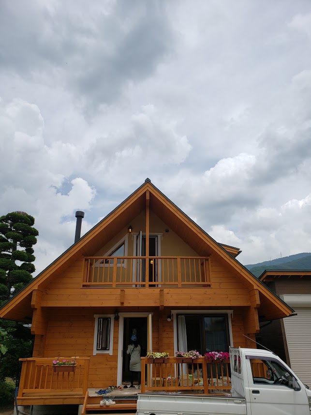 さてさて昨日のお仕事ですが松本市M邸様、離れのログハウスと倉庫が完成となりお引渡しさせていただきました。 離れなのでそれほど大きくなく約19坪のログハウスとなります。奥様のご趣味で絵本が沢山ありまして2階を本の書庫とするために建築させていただきました。 昨日は本のお引越しも進められていましたよ!