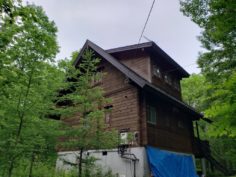 弊社事務所から約500mの場所にありまして約15坪の2階建てフィンランドラミネートログハウスになります。 築年数は私が入社した20年前にもありましたので築22年ぐらいといったところです。  築22年経過したログハウスがどうなるのか? 室内の木の香りはまだするのか?木に包まれるとリラックスできるのか? よく眠るのか? 等、自分がもしログハウスに暮らした際に一つの参考にしてもらえれば幸いです。