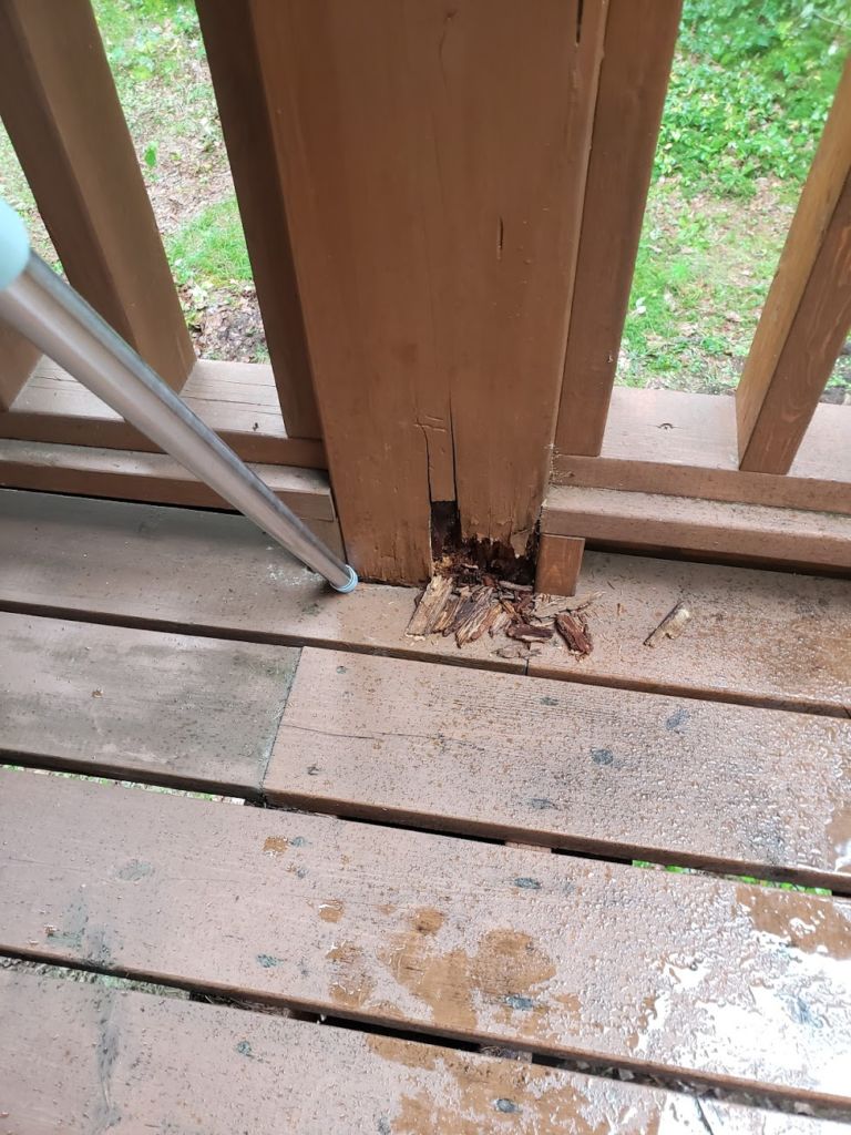 午後からすみえーるのご依頼でログハウスのテラス柱が腐っているのでみでほしいということで現調してきました。 屋根構造を考えないとこうなるのよね~。(弊社建築物件ではございません)