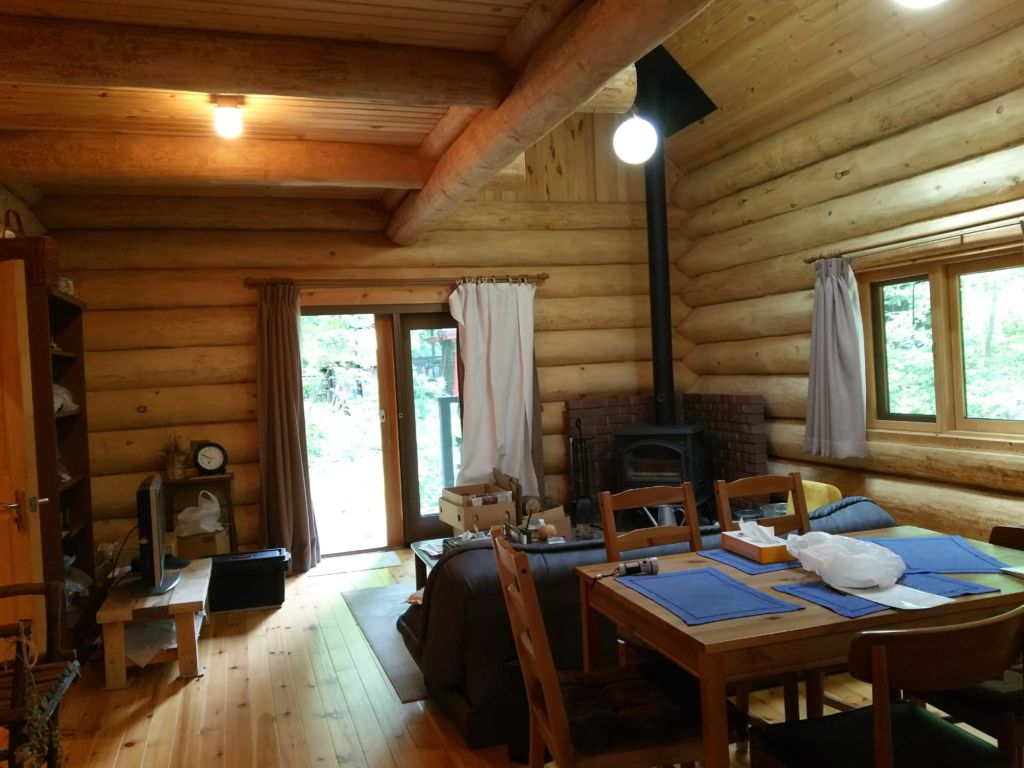 ハンドカットログハウスで延床約30坪、地下1.8m付きの良質な物件です。 建築した当時に私はこの建物の室内壁をサンダーがけさせていただきました。 ちょうど甲子園シーズンで決勝戦にマー君とハンカチ王子の対戦をラジオを聴きながらお仕事していたという思い出あるログハウスです。