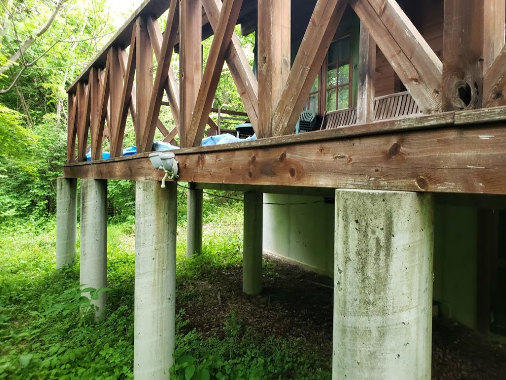 軽井沢エリア、北軽井沢エリアは別荘が多く最近はテラス改修のお仕事も増えてまいりました。 「うちもそろそろ」と思っている方、是非お気軽にお問合せ下さいね。