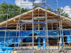 午前中は大工さんの要望でVillaホテルの各棟に仮設電気をFケーブルで引っ張りました。 管理棟付近に仮設電気ポールがあるのでFケーブルを地面に這わせて配線させていただきました。 一番奥のC棟まで約40m。 2.6㎜の太めの配線で引っ張りましたよ。