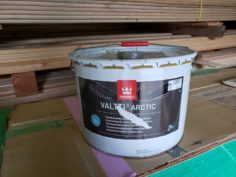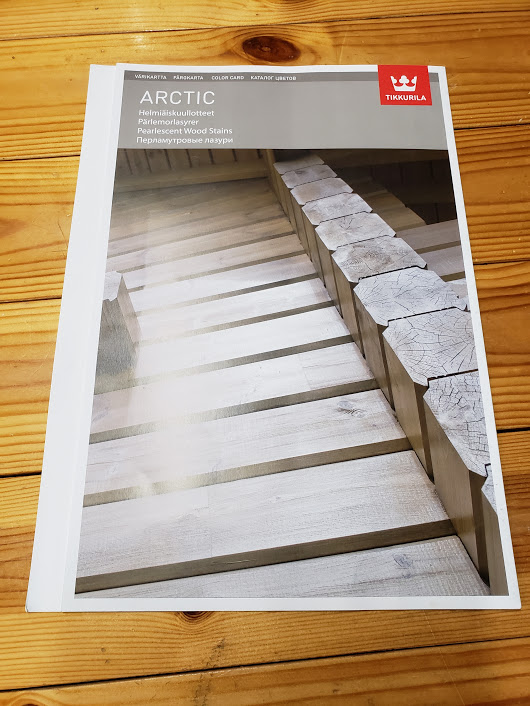 ここ最近ブログでも紹介している北欧塗料のティックリラ! Villaホテルでもオーナーさんに紹介してみたら「いいね~」ということでサンプルないので高い試し塗り塗料がやってきました。 塗料種類は「VALTTI ARCTIC」この塗料は水性になりますがパールが入っていてかなり塗った感じはカッコいい!! 軽井沢のスタイリッシュログメーカーの塗装が格好よくてずっと探していましたがやっと見つけられました!! 本日一回目の試し塗り。 乾きが遅いので明日2回目塗ってお客様にご提出しますね!