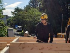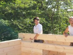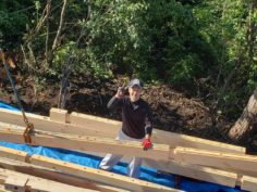 さてお仕事ですが小諸市K邸様の建て方工事を進めております。 昨日はK様が現地にきていただきまして記念にログ積み参加しました! どうです~! カケヤの持ち方が様になってますね!!