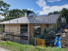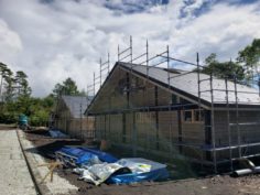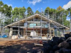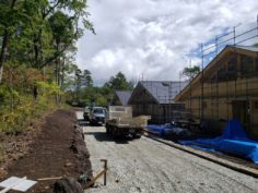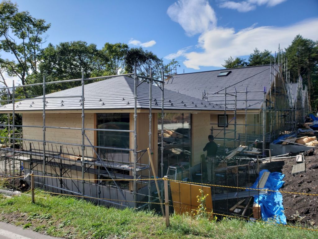 弟のマサヤ君は管理棟の外工事をこなしていまして複雑な軒裏工事のおさまりも四苦八苦しながらなんとか形にしていました。