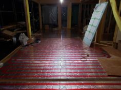 床暖房工事も始まりました。担当は弟のマサヤ君。 弊社は18年前からシームレス床暖房を採用していましてマサヤ君はシームレス床暖房施工ができるんですね! アルミパネルを敷き込み7Aの架橋ポリ管をアルミパネルの溝に入れていく施工方法になります。 架橋ポリを溝にいれたら赤いアルミテープでとめていきます。 この赤いアルミテープの役割はポリ管の固定と釘を打たないための目印となります。