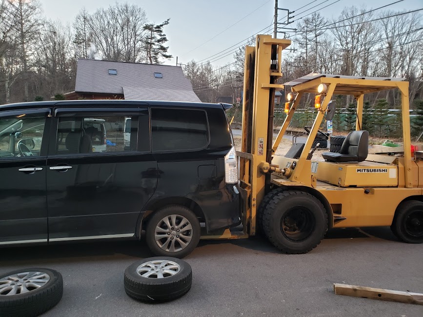 44歳の誕生日は朝から嫁の車のタイヤ交換! 建築業ならではのタイヤ交換です(笑)