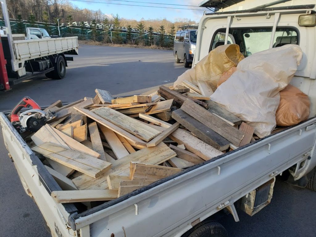 さてさて、ある家族の日曜日の出来事です。 午前中は冬支度のため廃材を軽トラック3台分集めました。