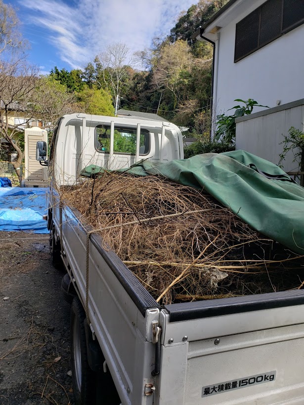 9時ごろA邸様現場でまして西湘バイパスとおっていざ鎌倉へ! 今月中旬からログハウス建て方工事をするためにトラックにて土台を運んだり建物廻りの地面養生。 また基礎内に水がたまってましたので水中ポンプで水抜き行ってきました。 基礎屋さんが処理費がかかるよ~といっていた基礎前に土地に生えていた草もせっかくなのでトラックに積んで綺麗にしましたよ!! 現地でてから荷下ろしの土地を貸してもらう方に挨拶いってきました。 実は今回で3回目!!いつも快く対応いただき本当に感謝感謝。 これで段取りは整いました! ログキットは現在中国から船便にて海の上!日曜日に入港で来週コンテナでやってきます!