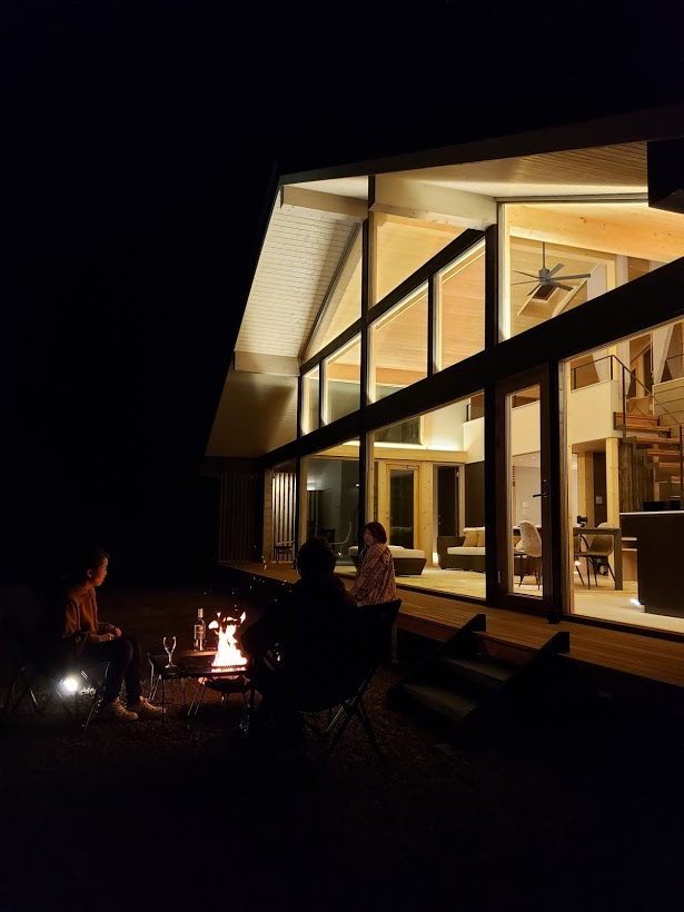 夜になったら庭で火を囲んだ絵も撮影していました。 私も隣でスマホでパチリ。 いい雰囲気です。