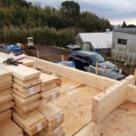 ログ壁一段から始まり2段3段!! お仕事終わるころには17段まで積み上げることできましよ!