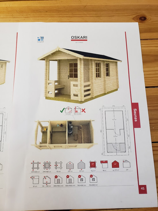 さてお仕事ですが、昨年お世話になったお客様から「サウナの見積もりをしてほしい」と依頼がございましてエストニアの担当者とここ数日やりとりしておりましてようやくまとまってまいりました。 サウナで使うヒーターは薪ストーブ式で水をかけて蒸気で温度を上げていくフィンランド語で「ロウリュ」ですね。  壁厚70mmのログハウスサウナ小屋とエストニアのサウナ薪ストーブ一式直輸入にておお見積りです。 以前からミニログ関連に興味もっておりましたので今後ミニログやサウナも弊社ラインナップに加えていこうと思案中です!