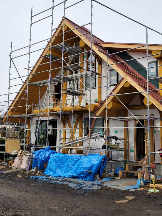 お仕事ですが御代田市F邸様の造作工事を山中大工さんが頑張ってすすめてくれております。 昨日は2階の妻壁施工が終わったとのことで今日から床張り作業に入っております。 引き続きよろしくお願いします。