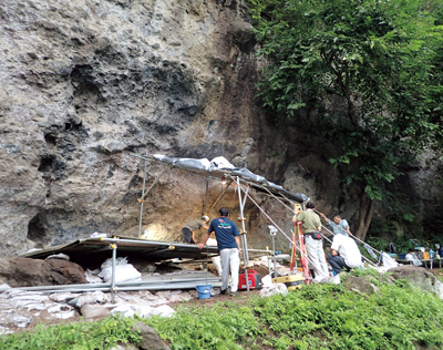 長野原町貝瀬のじいちゃん、ばあちゃんのお墓近くには居家以岩陰遺跡がありまして国内最古級とされる約8300年前の埋葬人骨が出土されたんですよ。 昨日行ってみましたらホントに近くて距離にして約200mぐらいでしたね。 8300年前にこの場所で人が暮らしていたのか? 8300年前からこのあたりの地形は変わってないのか?なんて不思議に思ってしまいました。 以下の画像はホームページからお借りしました。