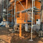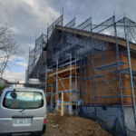 1時についてA様が1階の電気工事をセルフにて施工してくださったので施工状況を確認させていただきました。 ほぼ完ぺきなお仕事で安心しました。 八坂大工さんがユニットバス廻りの工事途中でしたので基礎内からの幹線をユニットバス上まで立ち上げる工事をお手伝い。+天井施工が終わってましたのでA様とダウンライトの穴をあけさせていただきましたよ! いやいやA様たいしたもんです。
