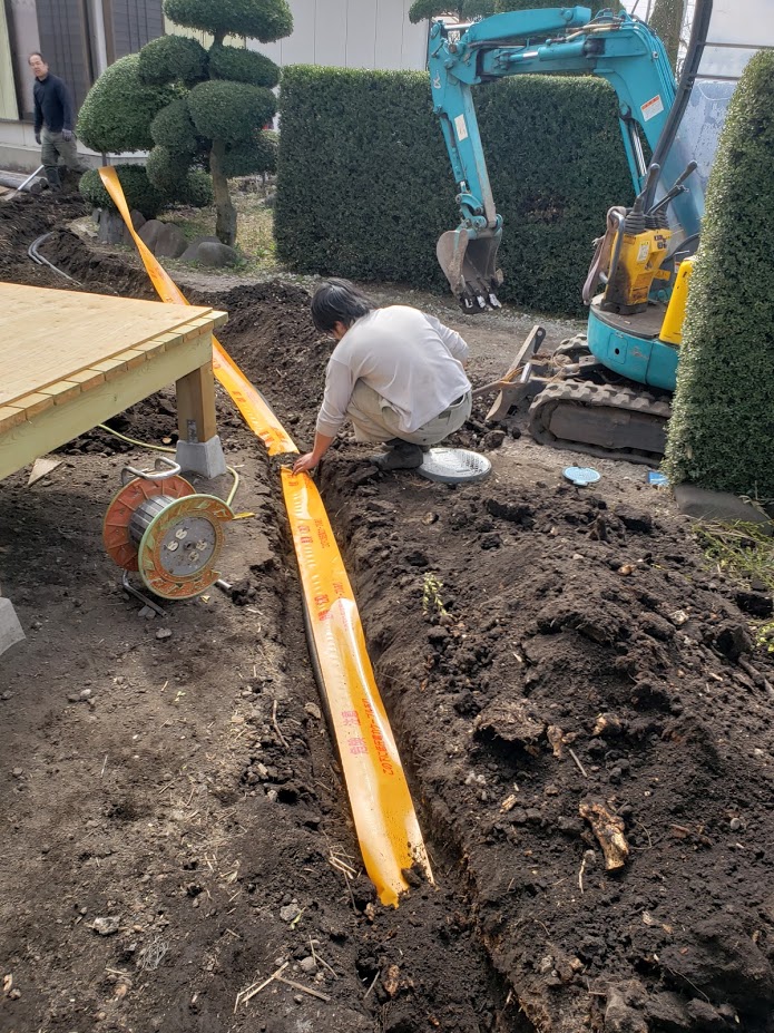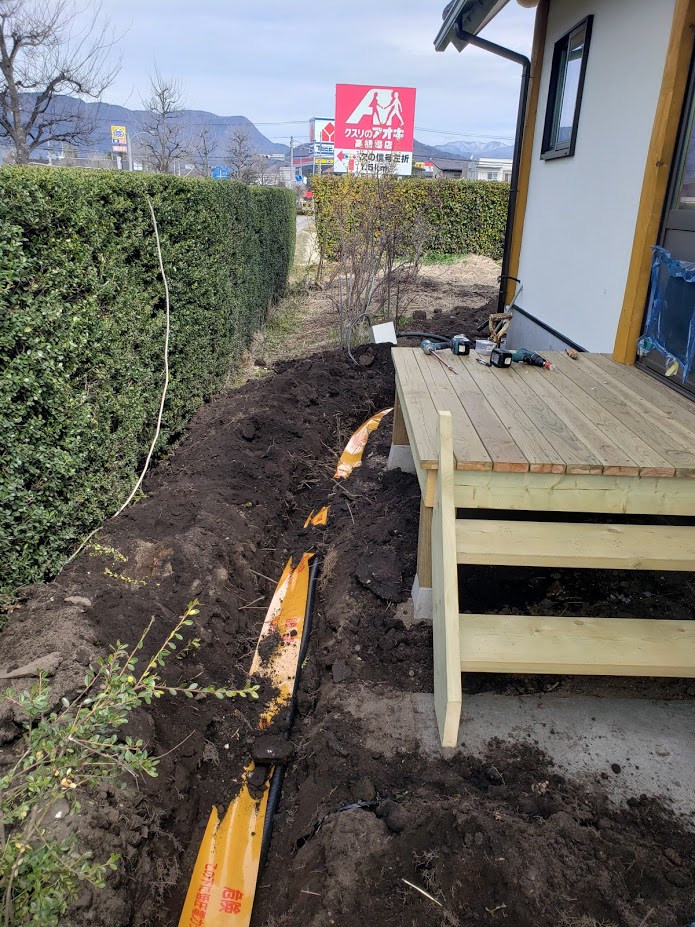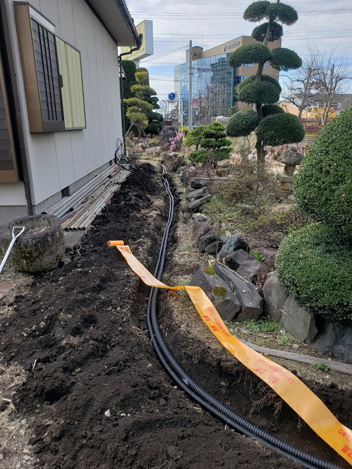 3. 群馬県沼田市T邸様ポスト&ビームログハウス 電気幹線埋設工事!!