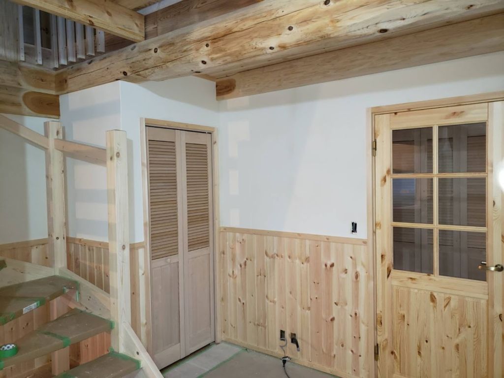 室内も腰板上に塗り壁が施されました。 室内も大分形になってきましたよ! 月内完成目指して今週からラストスパートです!