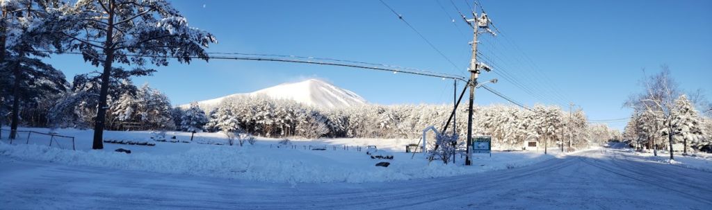 おはようございます。 野口 展孝です。 浅間高原の昨日の天気は雪! 大して積もらないでしょうと昨日のブログで書かせていただきましたが事務所付近では約10cmほど積もりました。 いやいや結構積もりましたね。 水分が多いので雪が重かったですが、今朝はかなり冷え込んで雪がガチガチになっていますね。 思ったより事務所が寒いので薪ストーブに火入れました。 事務所から南に200mの浅間山がよくみえるスポットでパノラマ写真撮ってみましたよ。 今日はいい天気となりそうです。