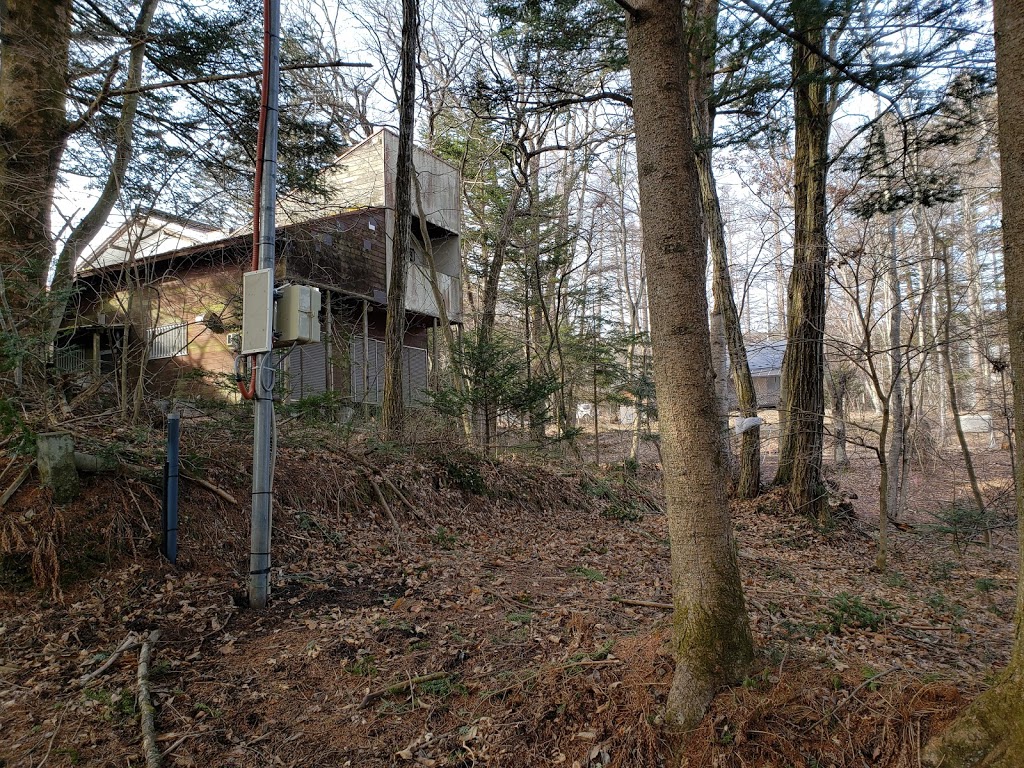 お仕事ですが昨日は軽井沢にてこれから始まるO邸様現場にてO様と設計士さんとで位置確認と高さ確認、伐採木の再確認させていただきました。 高低差があり基礎高約3mになる部分がございますのでボリュームあるお仕事です。 来週伐採工事に入りますよ。 位置確認にいったので電気仮設電柱を建ててきました。 穴掘り10分、建柱30分てとこですね!