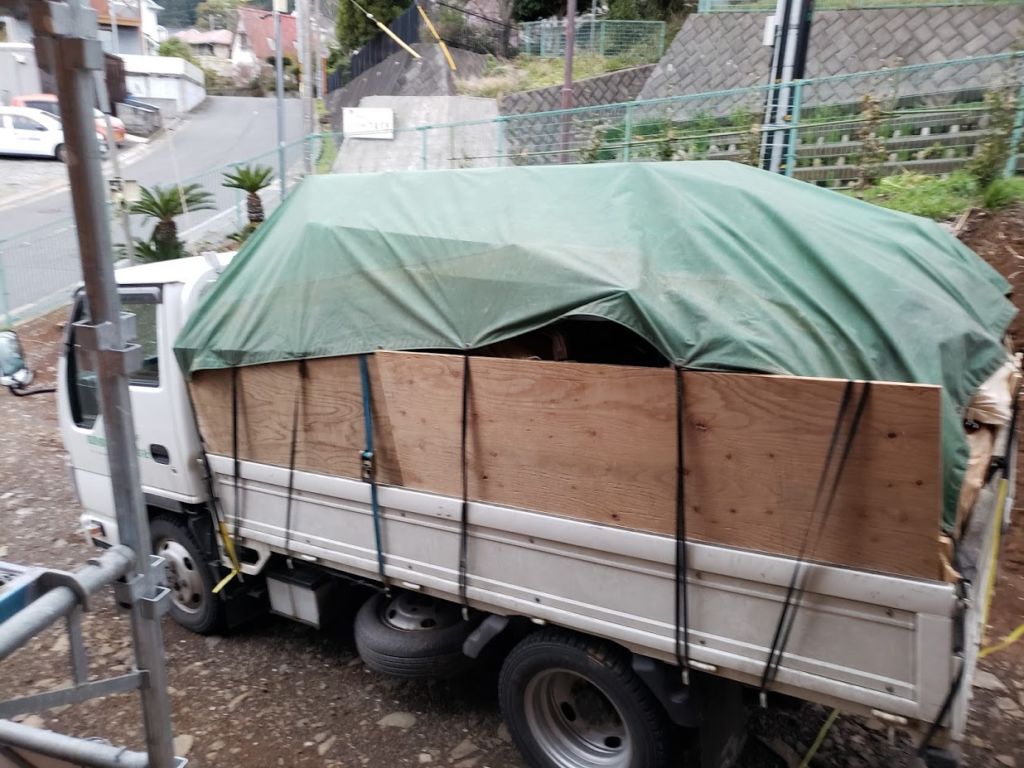 2時にN邸様を出発して湯河原町A邸様現場へ。 ゴミ片付けの作業があったので昨日はトラックで神奈川県へ!! 到着したのが3時半。 沢山のゴミと廃材をトラック満載に積み込みました!