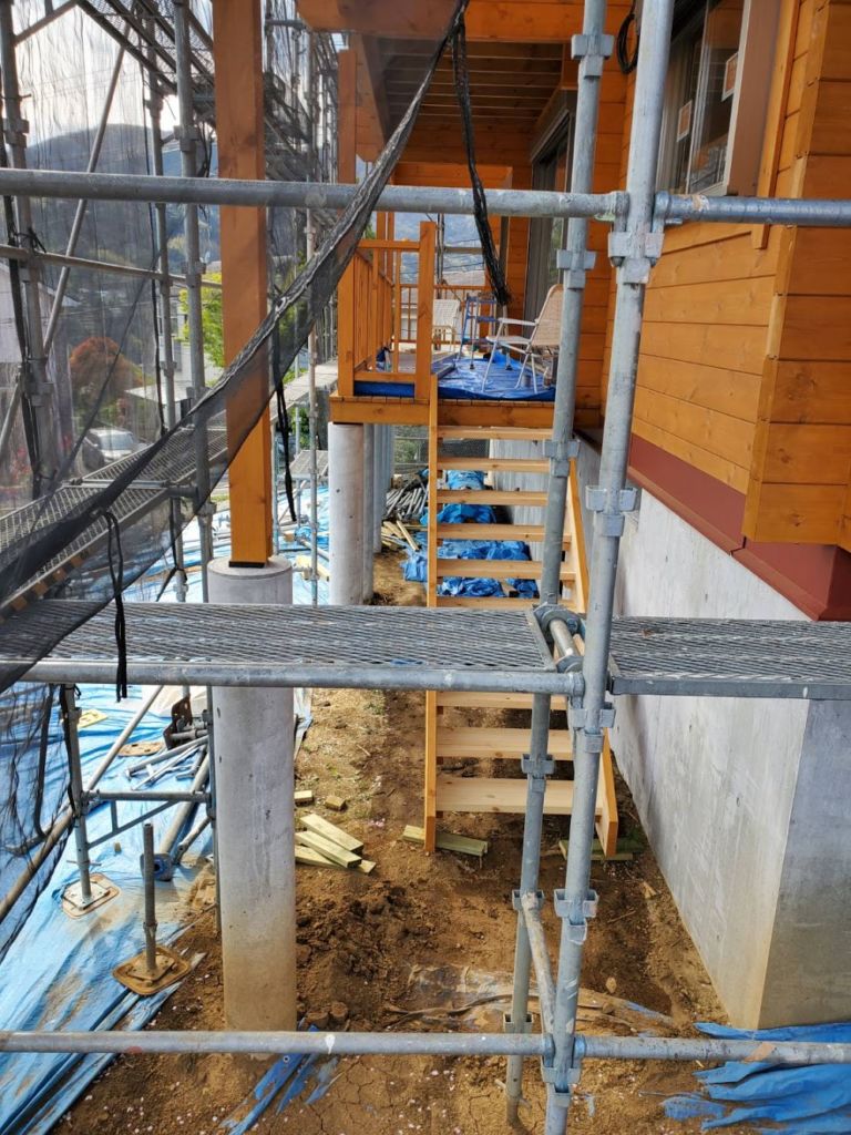 先週山崎さんによる外部塗装工事もほぼ終わりまして来週後半に足場解体の段取りとなりました。