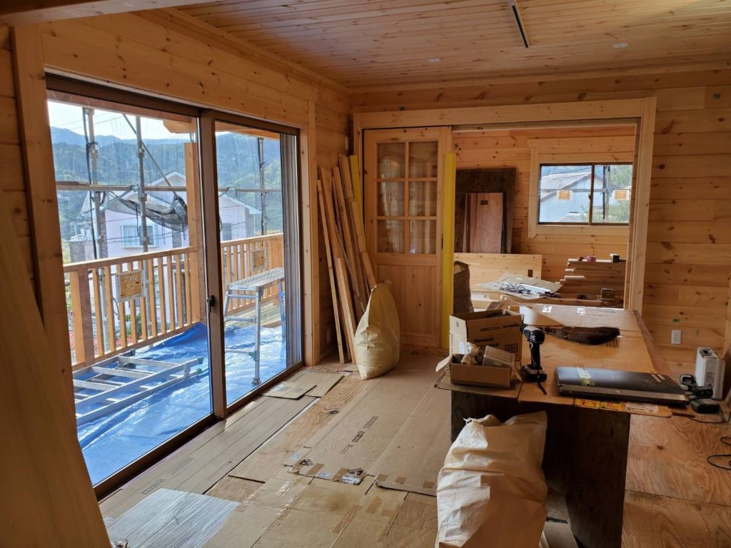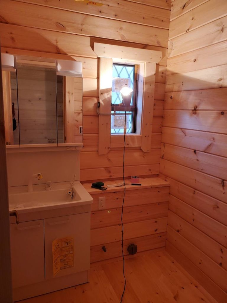 さてお仕事ですが神奈川県湯河原町にて建築中のA邸様ログハウス工事は造作工事が終盤となってきました。 八坂大工さん1月中旬から3か月間ホントよく頑張ってくれていました。 さすが!!八坂さん!!ありがとうございます!!