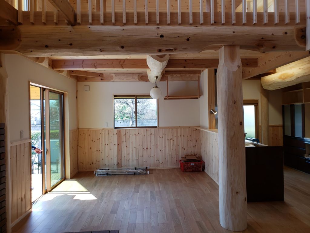 さてお仕事ですが群馬県沼田市ポスト&ビームのT邸様、昨日無事お引渡し&お引越しとなりました。 心配してたトイレも無事入荷しまして設備屋さんが昨日取り付けて水道OK。電気は昨日検査員がきて検査OK。 床暖房の試運転で床暖OK。一昨日クリーニングも終わりましたので網戸も午前中に取り付けられました。 午後からは薪ストーブの取付、試運転でT邸様完成となりましたよ。 太い梁と柱の構造美と室内は木を多く利用してぬくもりある空間となりました。T様に喜んでいただけたことがなりよりです。 今後とも末永いお付き合いどうぞよろしくお願いします。