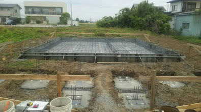 さてお仕事ですが群馬県前橋市にてN邸様ログハウス新築工事、基礎工事が着工となっております。 昨日は鉄筋検査ございまして検査はばっちりグーでした。 給排水設備工事の逃げ配管もできまして本日ベースコンクリート打設となりますよ!
