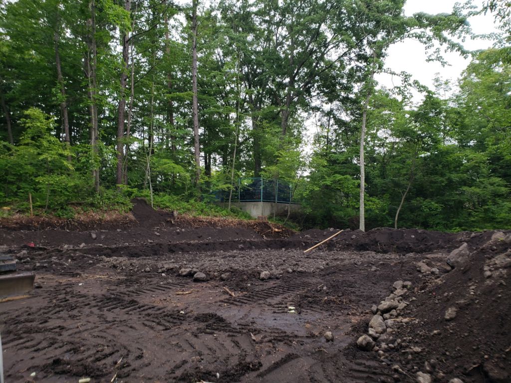 おはようございます。 野口 展孝です。 今朝は4時起きにて今日から建て方始まるN邸様ログハウス建て方工事に来ております。 建て方初日は荷下ろしから! 荷下ろしは高原都市開発お得意のマンパワー作業になります。 コンテナの到着が遅れておりまして9時から作業開始となりますが雨も降っているのでちょうどいいかも。 これからゆっくりと雨雲がぬけて9時過ぎぐらいには大分小雨になってくるのではないかとノブ天気予報を都合のいいように考えております(苦笑)
