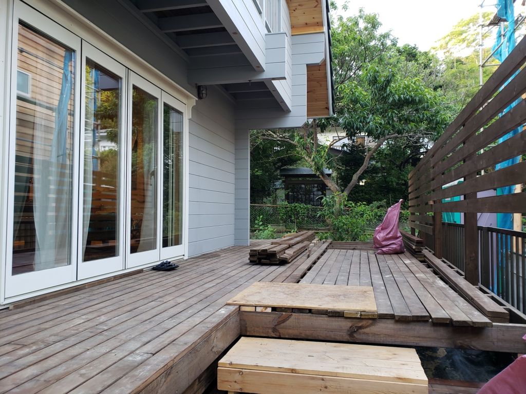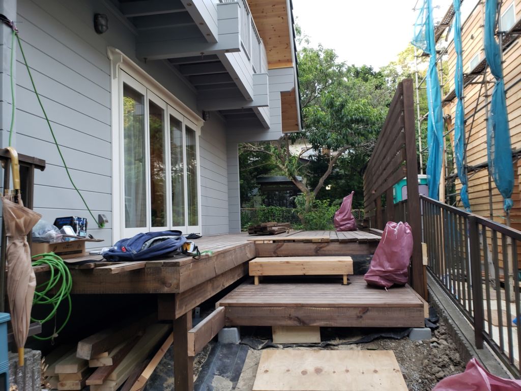 さてお仕事ですが日曜日から鎌倉市N邸様のテラス工事施工さえていただいておりましてだいぶ形となってきました。 本日の貴重な晴れの天気のうちに仕上げてられればと思っております。