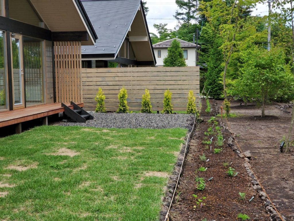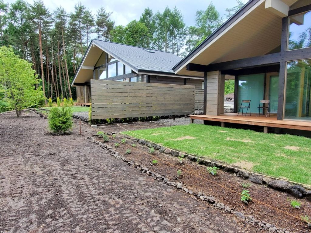 さてお仕事ですが昨年完成した軽井沢ホテルのヴィラメッサKARUIZAWAさんのお仕事で各棟間の塀工事が完了しました。 塀を設けることによって3棟のプライベート性が一層よくなりより宿泊のお客様に喜んでもらえるようないい雰囲気となりました。 庭にでたらお隣の宿泊客のこと気にはしたくないですもんね。 「庭に出たらお互いの配偶者がいた」なんてことになったらまさに修羅場ですからね(ジョークです(苦笑))