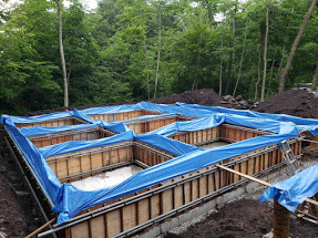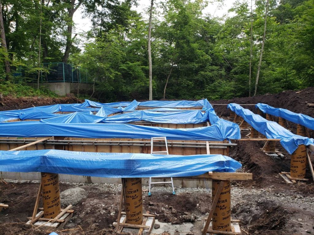 軽井沢K邸様では本日立上りのコンクリート打設が完了。 先週末にベースコンクリート打設したばかりなのに1週間で立上りコンクリートまで!! いやいや高原都市開発の自社基礎工事は大したものです!!