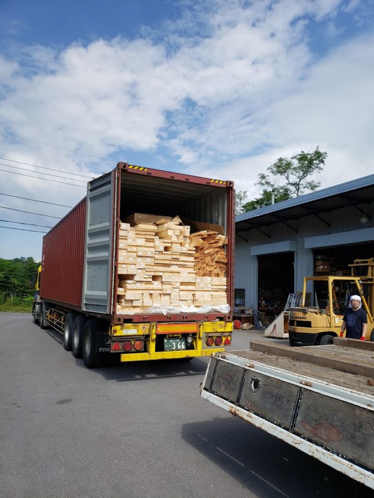 倉庫にてK邸様ログハウスキット荷下ろし!