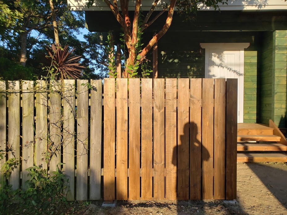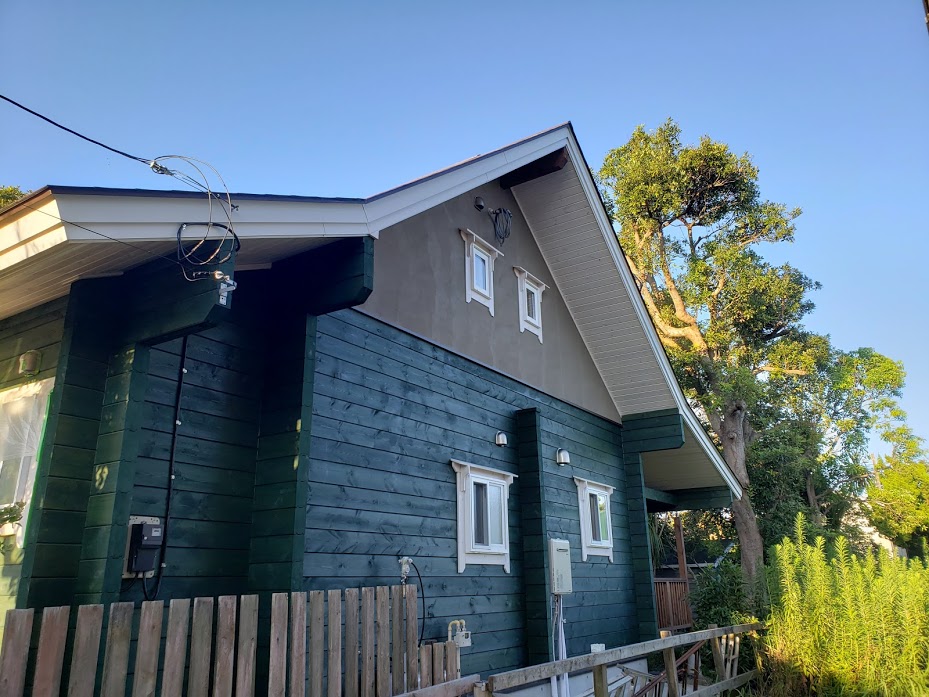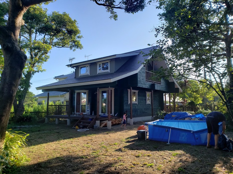 昨日のお仕事ですが朝2時から弟のマサヤ君と千葉県長生村G邸様に外部塀の工事と細かな作業に行ってきましたよ。 浅間高原の標高1100mから4時間で標高0m地域へ。 塀の工事なので支柱を建てる穴掘りからの作業でしたが朝8時ぐらいでTシャツがびっしょになってしまいました(苦笑) 穴掘り作業はマサヤ君と共同作業しまして、穴掘り工事が終わったら私はお客様からの要望で防犯カメラの設置させていただきました。 室内用の防犯カメラでしたので外部でも雨風に当たらないよう線を隠すボックスを木材で作成させていただき取付させていただきました。 G様はご家族でいらっしゃいましたので細かな要望の工事や細かな手直しの作業させていただきました。 その間にマサヤ君は塀の造作完了して4時から二人でペンキ塗り。 兄弟共同作業でいい感じの塀となりました。