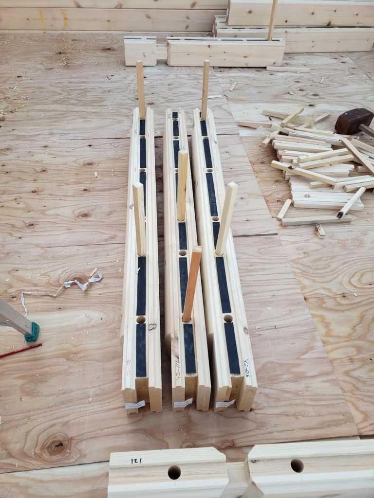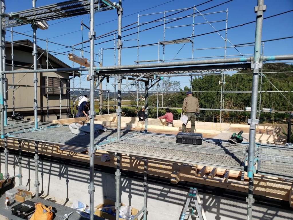 さてお仕事ですがO邸様建て方工事は本日床伏せ仕事から!! 1F根太工事からのステージ作成! 2段3段4段とつみあげて本日13段まで積み上げることできましたよ。 以奈場木材さんのスタッフ一人一人が役割分担をしっかりお仕事いただきスムーズに工事が進みました! 感謝感謝ですね。 明日は日曜日ですがお仕事させていただきまして天気がいいときに上棟~雨仕舞ができればと思っております。