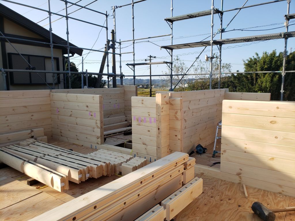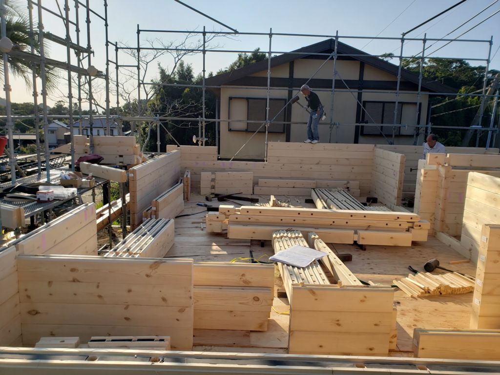 3. 千葉県館山市O邸様ログハウス建て方工事2日目!