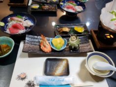 宿のきらくさんの今日の夕食。美味しかったな~。 写真のような夕食ついて1泊6500円です。