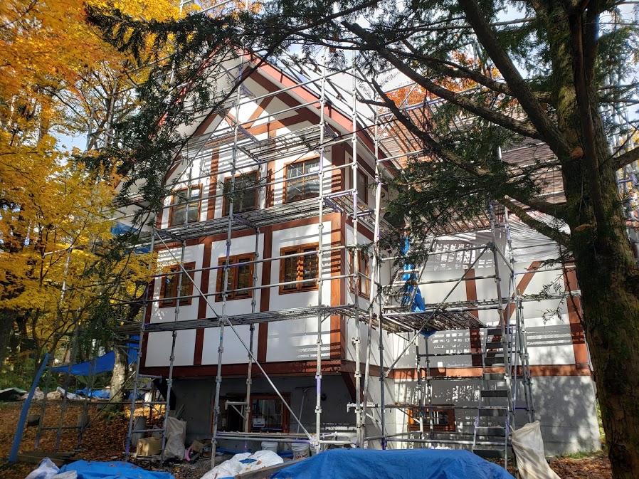 さてお仕事ですが長野県茅野市N邸様では基礎型枠解体となりまして埋め戻し工事に入ります。 ログキットが一足早くエストニアから到着してしまったので近くの建設屋さんの土場を借りて荷下ろしさせていただきました。 少し保管して11月8日の週からログ積みを開始したいと思います。