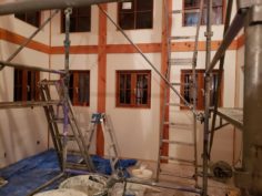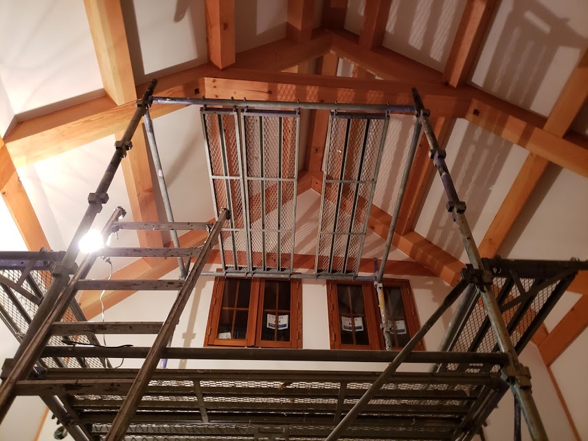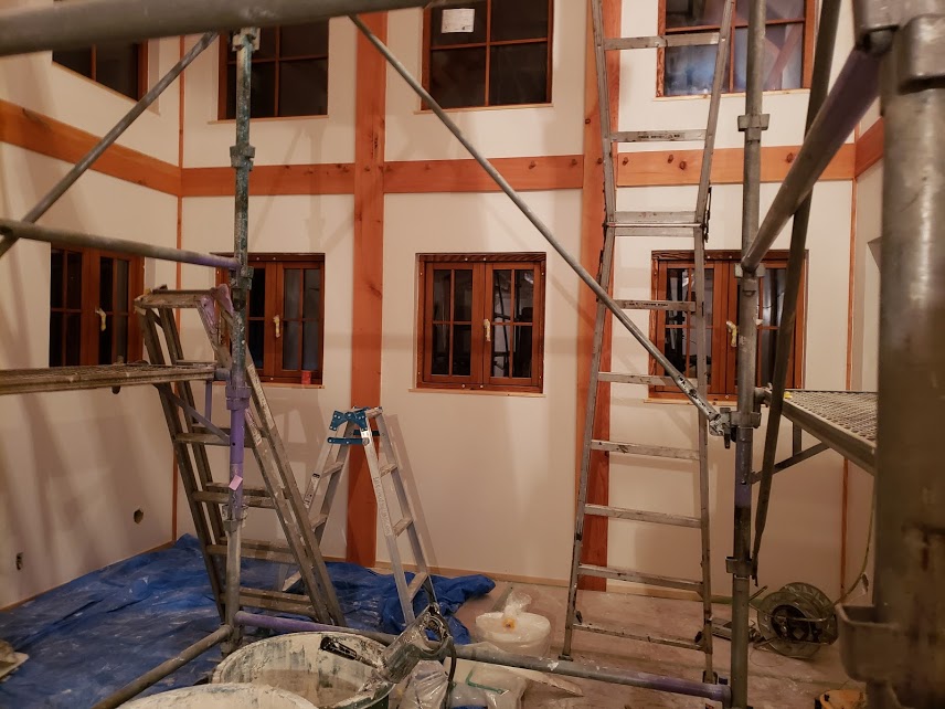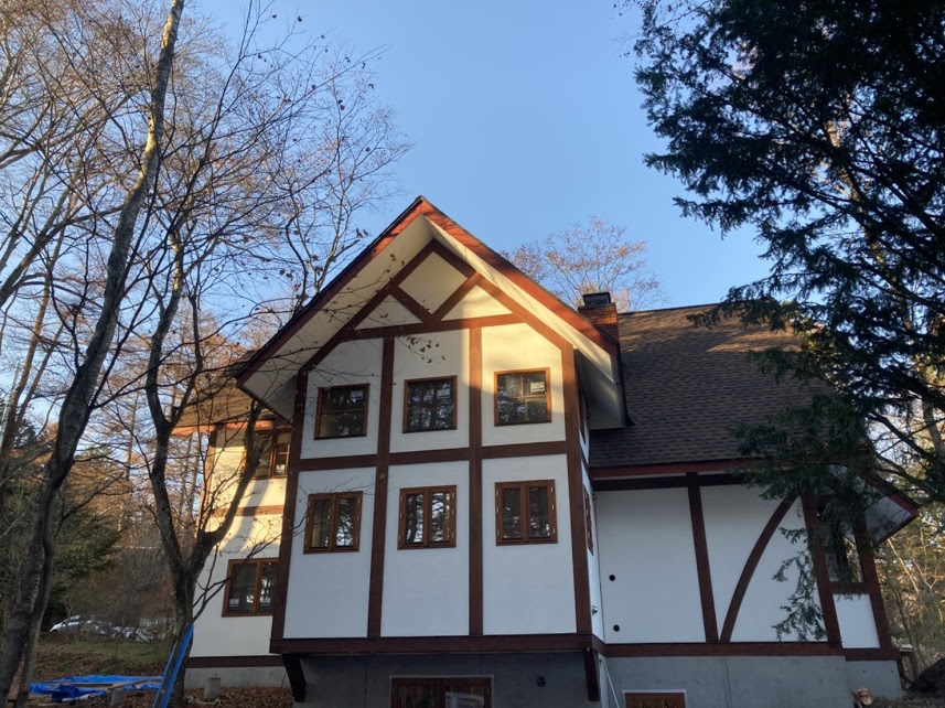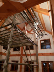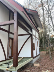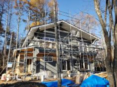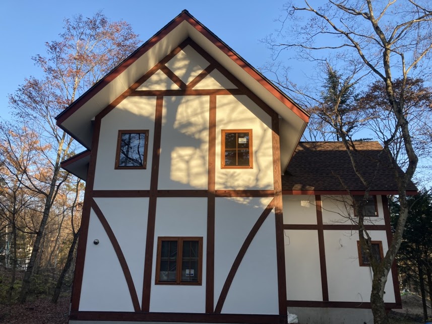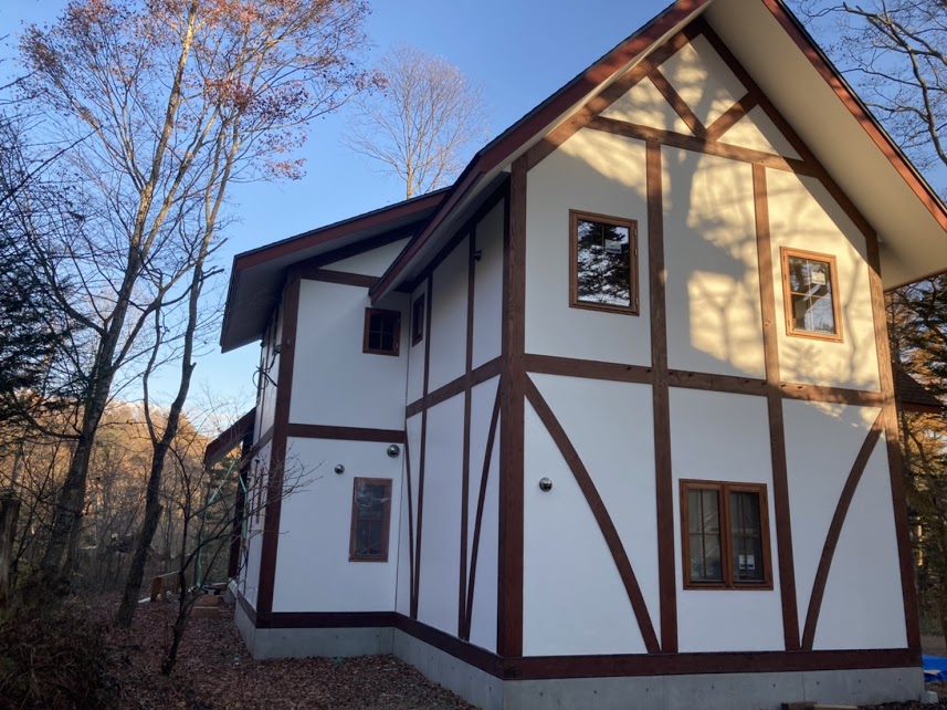 さてお仕事ですが軽井沢にて新築工事進めさせていただいております。 ティンバフレームO邸様では足場が解体されすっきりしました! 外部テラス工事進めております。 室内塗り壁工事は黒岩官業さん頑張ってくれていまして7割塗り込みました。