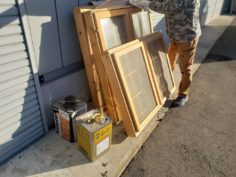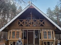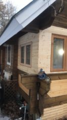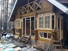 さてお仕事ですが築約30年になる弊社ログハウス原点のO邸様ログハウスの改築工をしています。 2mあるテラス部分をワンちゃんのための風除室を造作していますよ。 窓は弊社が長年倉庫にてO様のために10年以上取り置きしておいたフィンランド木製窓を使用。 正面左右はメーカー違いますが、フィンランド老舗のプロフィンとスカーラの窓になります!! ちなみに右窓はエストニア、左窓は中国木製窓をラインナップしました。