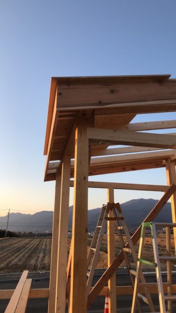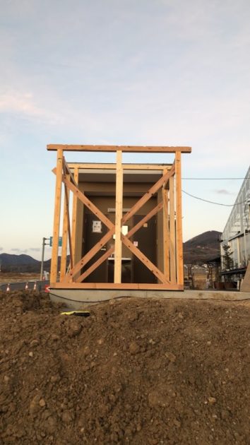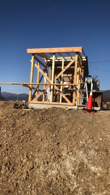 長野県上田市の荻原植物園さんの外男子トイレ新設工事は骨組みを組み上げて形となってきました。 八坂大工さんに対応してもらってます!