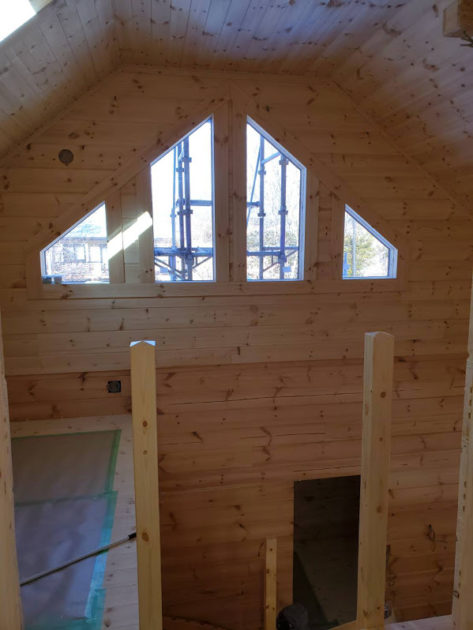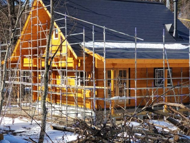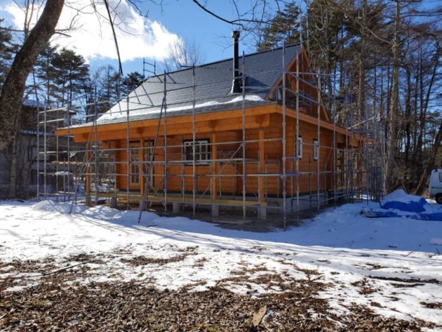 さてお仕事ですが高原都市開発ログハウスは皆様に「木のラブレター」とお届しています。 長野県茅野市ではN鄭様のログハウス新築工事進めておりまして山中大工さん造作工事進めてくれています。 塗装もほぼ終わりいい形になりました。 山崎さんが寒い中頑張って塗装してくれました!