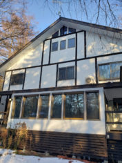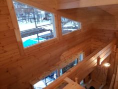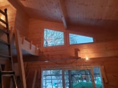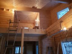 さてお仕事ですが草津町M邸様フィンランド134㎜厚マシンカットログハウスの造作工事順調に進んでいます。 天井施工から吹き抜けの足場も解体されましたね。 マサヤ大工1人での作業ですがいいお仕事しています!! 雪深くまだまだ大変な時期ですが頑張ってください。よろしくお願いします。