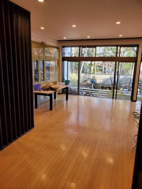 さてお仕事ですが午前中は事務仕事、午後から軽井沢にて検討されているお客様とお会いさせていただきました。 お打合せ後にリフォーム工事終盤のH邸様現場に行ってきました。 夕方だったので誰もいませんでしたがマサキさんがきれいに現場クリーニングしてくれましたよ。 ガラスもかなり綺麗になり完成にぐっと近づきましたね。 H様は管理宿泊所としてリフォームした建物を活用します。いい雰囲気ですので繁盛しそうな気配がしますよ!