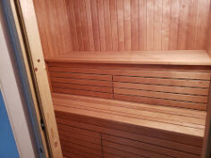 さてお仕事ですが群馬県草津町M邸様フィンランドマシンカットログハウスのサウナ造作工事が完了しました。その他の造作工事もほぼ終わり暖かくなってきたので外部塗装工事の段取りもしています! フィンランドから直輸入の板材! いい雰囲気ですね!!